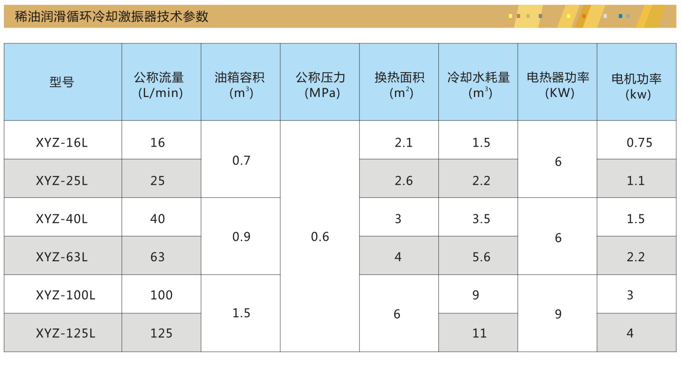 / PRODUCT DETAILS 稀油潤滑循環(huán)冷卻激振器適用于冶金、礦山、鍛壓、電力、化工、輕工、水泥、港口等機械設(shè)備的稀油循環(huán)潤滑系統(tǒng)中,通常安裝在機器附近的地下油庫或地坑內(nèi)。