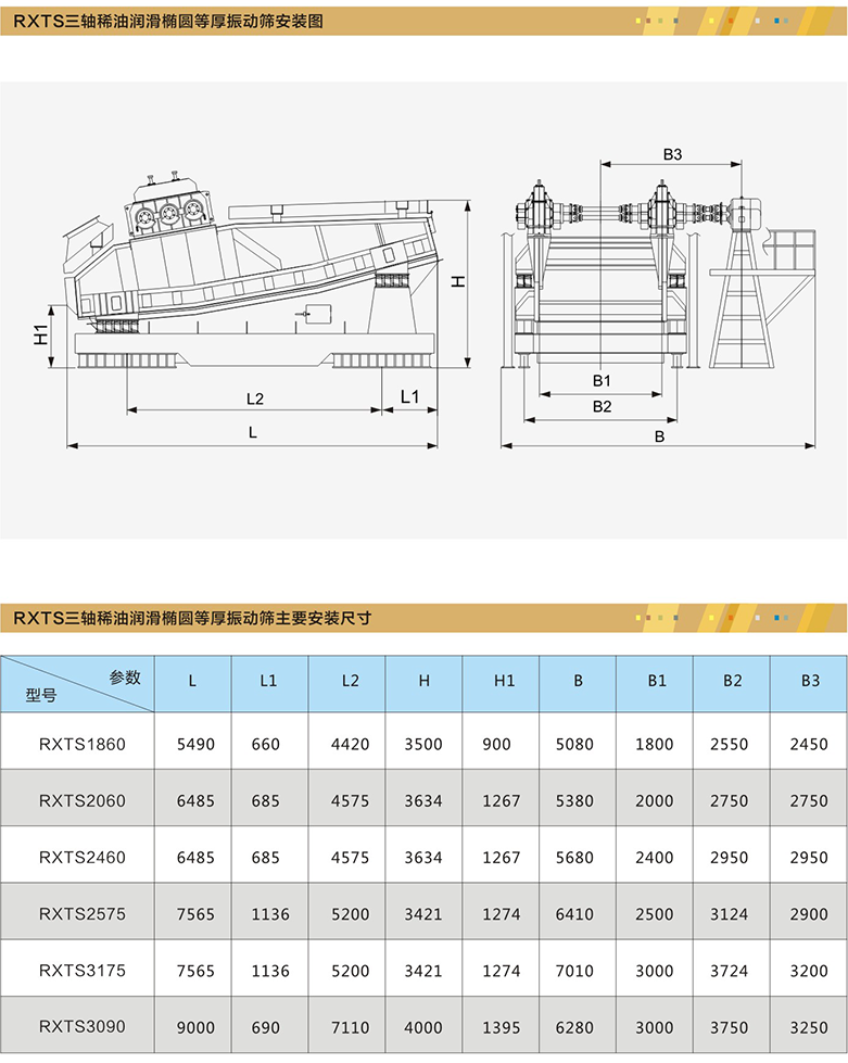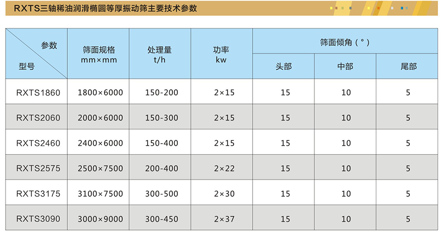 RXTS 系列橢圓等厚振動篩和同規(guī)格其它型號篩機相比,有更大的處理量和更高的篩分效率,適用于冶金行業(yè)的溶劑、冷燒結(jié)礦篩分、礦山行業(yè)的礦石分級,煤炭行業(yè)的分級及脫水、脫介等作業(yè),是現(xiàn)有大型振動篩及國外引進產(chǎn)品的理想替代產(chǎn)品。